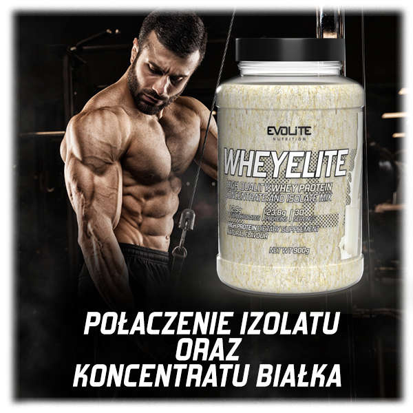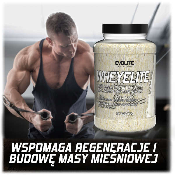 Evolite WheyElite jest połączeniem koncentratu białka serwatkowego oraz izolatu, bez zbędnych dodatków. Odżywka ta charakteryzuje się bardzo dobrą przyswajalnością, aminogramem, świetnym smakiem jak i znakomitą rozpuszczalnością zarówno w wodzie jak i w mleku.