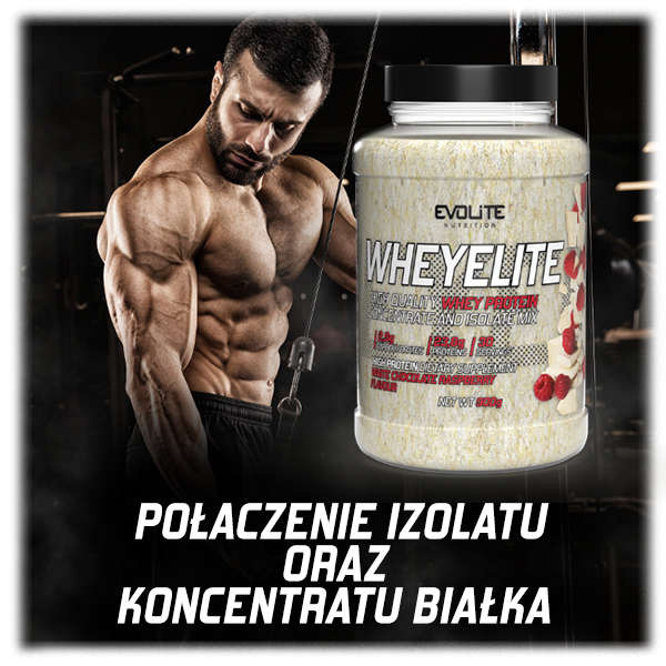 Evolite WheyElite jest połączeniem koncentratu białka serwatkowego oraz izolatu, bez zbędnych dodatków. Odżywka ta charakteryzuje się bardzo dobrą przyswajalnością, aminogramem, świetnym smakiem jak i znakomitą rozpuszczalnością zarówno w wodzie jak i w mleku.