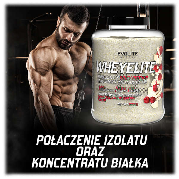 Evolite WheyElite jest połączeniem koncentratu białka serwatkowego oraz izolatu, bez zbędnych dodatków. Odżywka ta charakteryzuje się bardzo dobrą przyswajalnością, aminogramem, świetnym smakiem jak i znakomitą rozpuszczalnością zarówno w wodzie jak i w mleku.