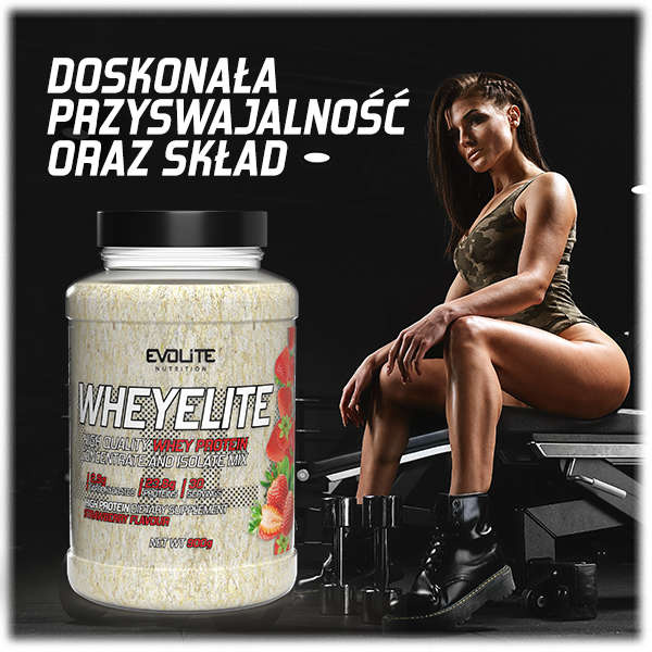 Evolite WheyElite jest połączeniem koncentratu białka serwatkowego oraz izolatu, bez zbędnych dodatków. Odżywka ta charakteryzuje się bardzo dobrą przyswajalnością, aminogramem, świetnym smakiem jak i znakomitą rozpuszczalnością zarówno w wodzie jak i w mleku.