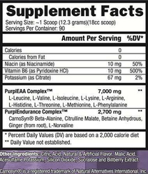 Twórcom Purple Wraath udało się stworzyć bardzo kompletny zestaw aminokwasów niezbędnych i rozgałęzionych. Dzięki temu twój organizm będzie cały czas w stanie anabolizmu a Ty będziesz mógł trenować dłużej i intensywniej.