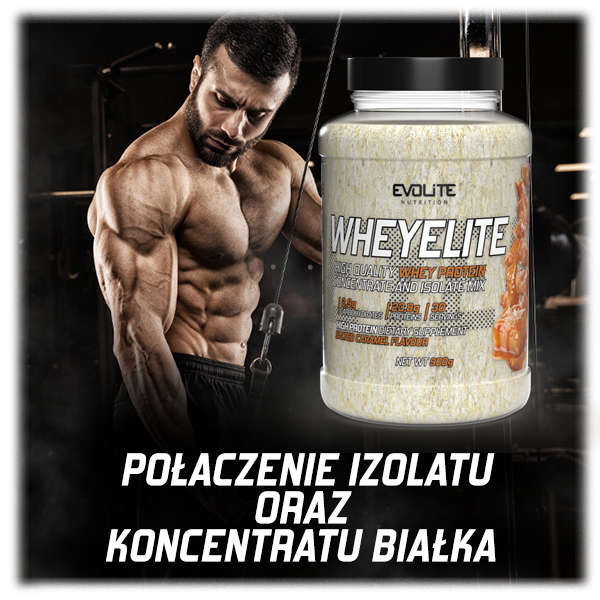 Evolite WheyElite jest połączeniem koncentratu białka serwatkowego oraz izolatu, bez zbędnych dodatków. Odżywka ta charakteryzuje się bardzo dobrą przyswajalnością, aminogramem, świetnym smakiem jak i znakomitą rozpuszczalnością zarówno w wodzie jak i w mleku.