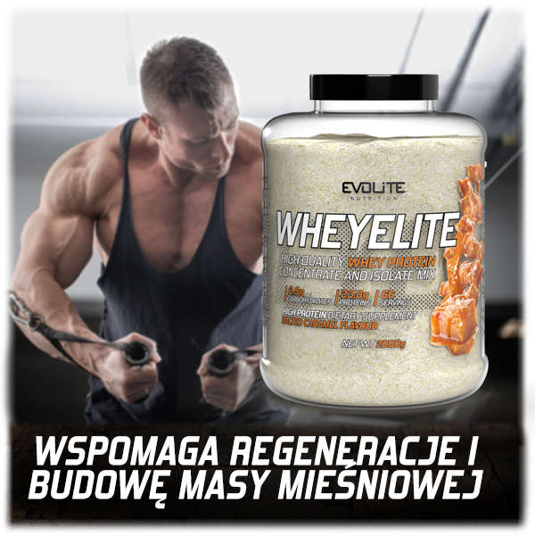 Evolite WheyElite jest połączeniem koncentratu białka serwatkowego oraz izolatu, bez zbędnych dodatków. Odżywka ta charakteryzuje się bardzo dobrą przyswajalnością, aminogramem, świetnym smakiem jak i znakomitą rozpuszczalnością zarówno w wodzie jak i w mleku.